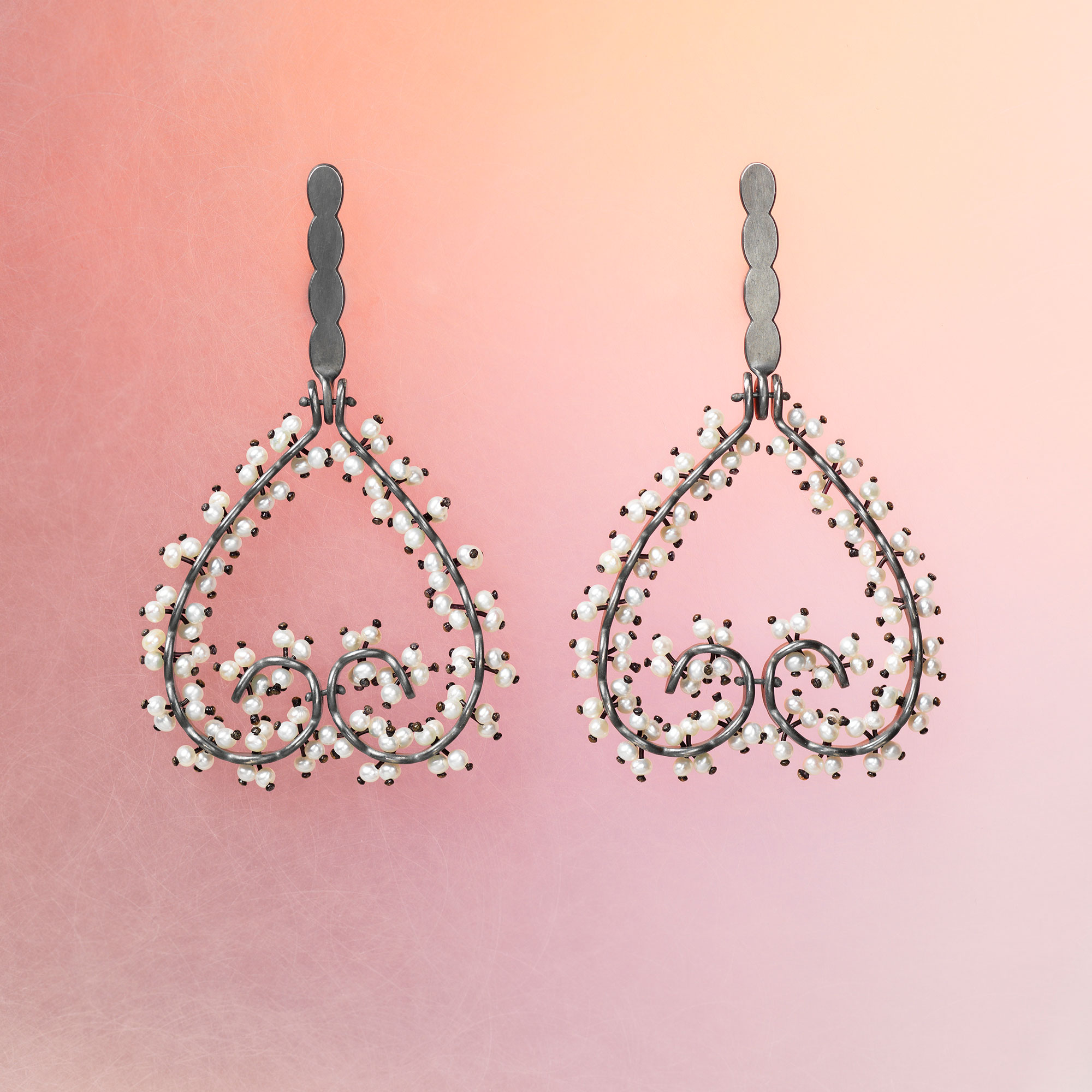 Bloom Earrings 2021Oxidised silver, freshwater pearls6.2 x 3.8cm # 2020s ← Pearl Dot Necklace Bloom earrings →