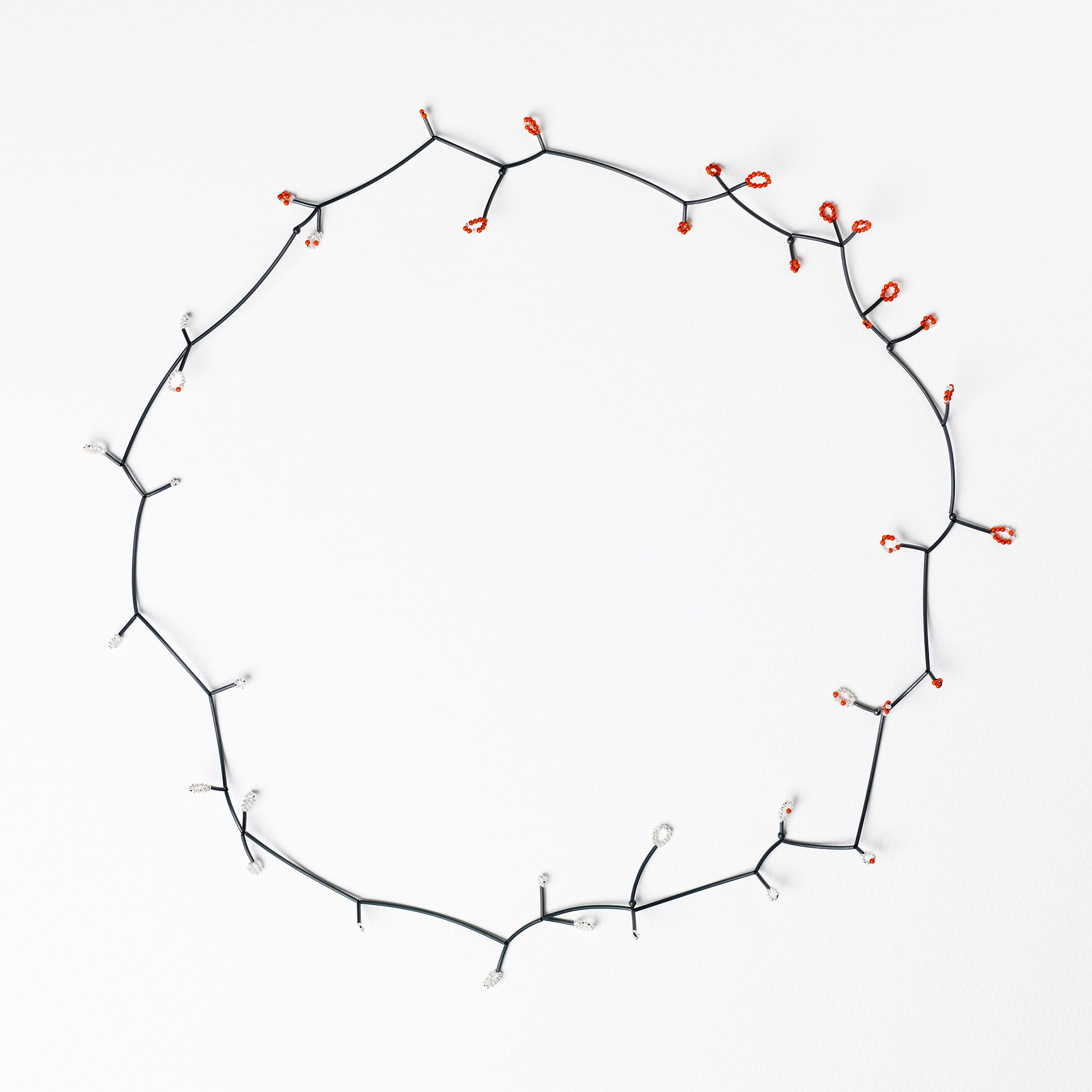 Bloom necklace series 2019 Oxidised silver, faux coral & freshwater pearls 40 cm L # 2010s ← Bloom necklaces I&II Pearl Dot Necklace →