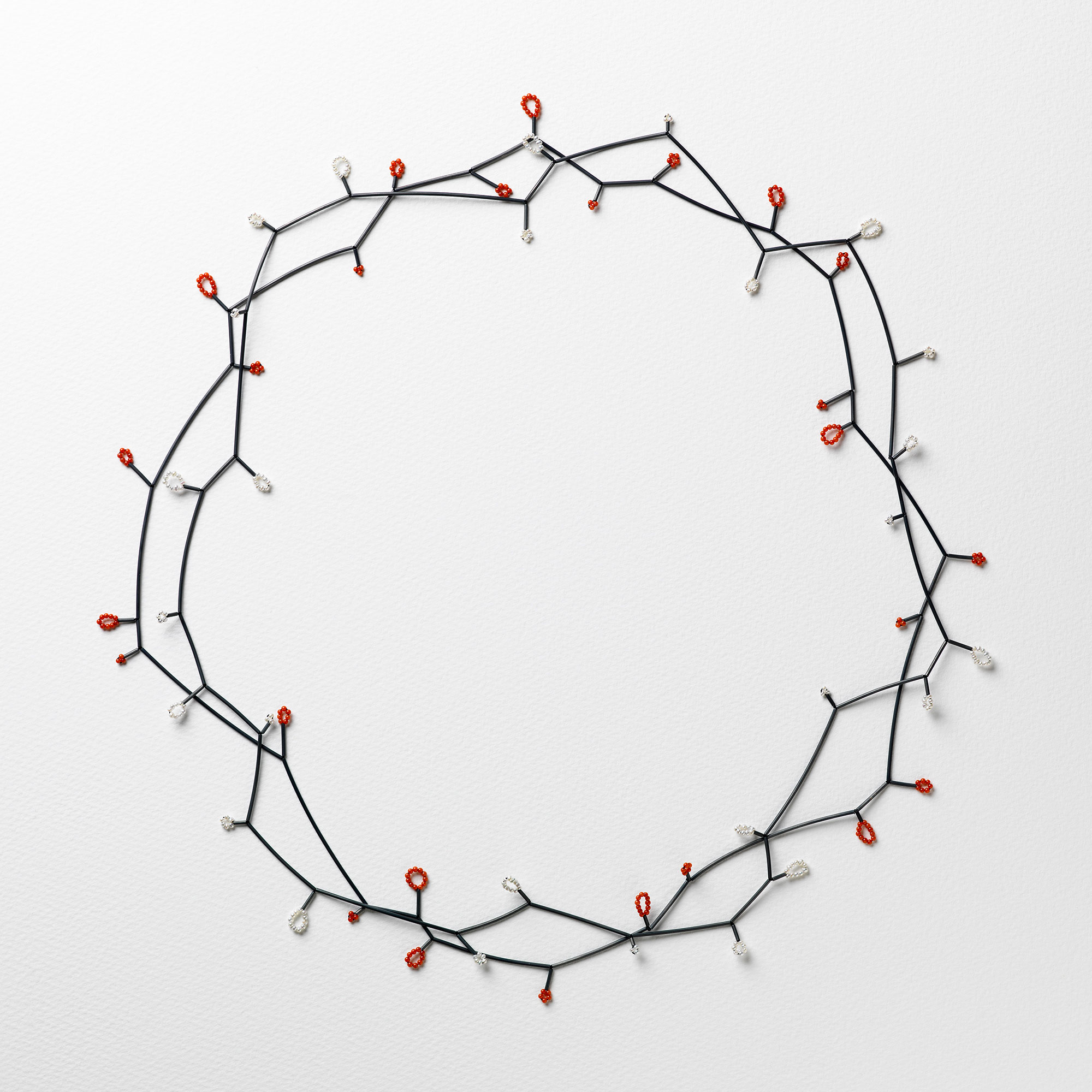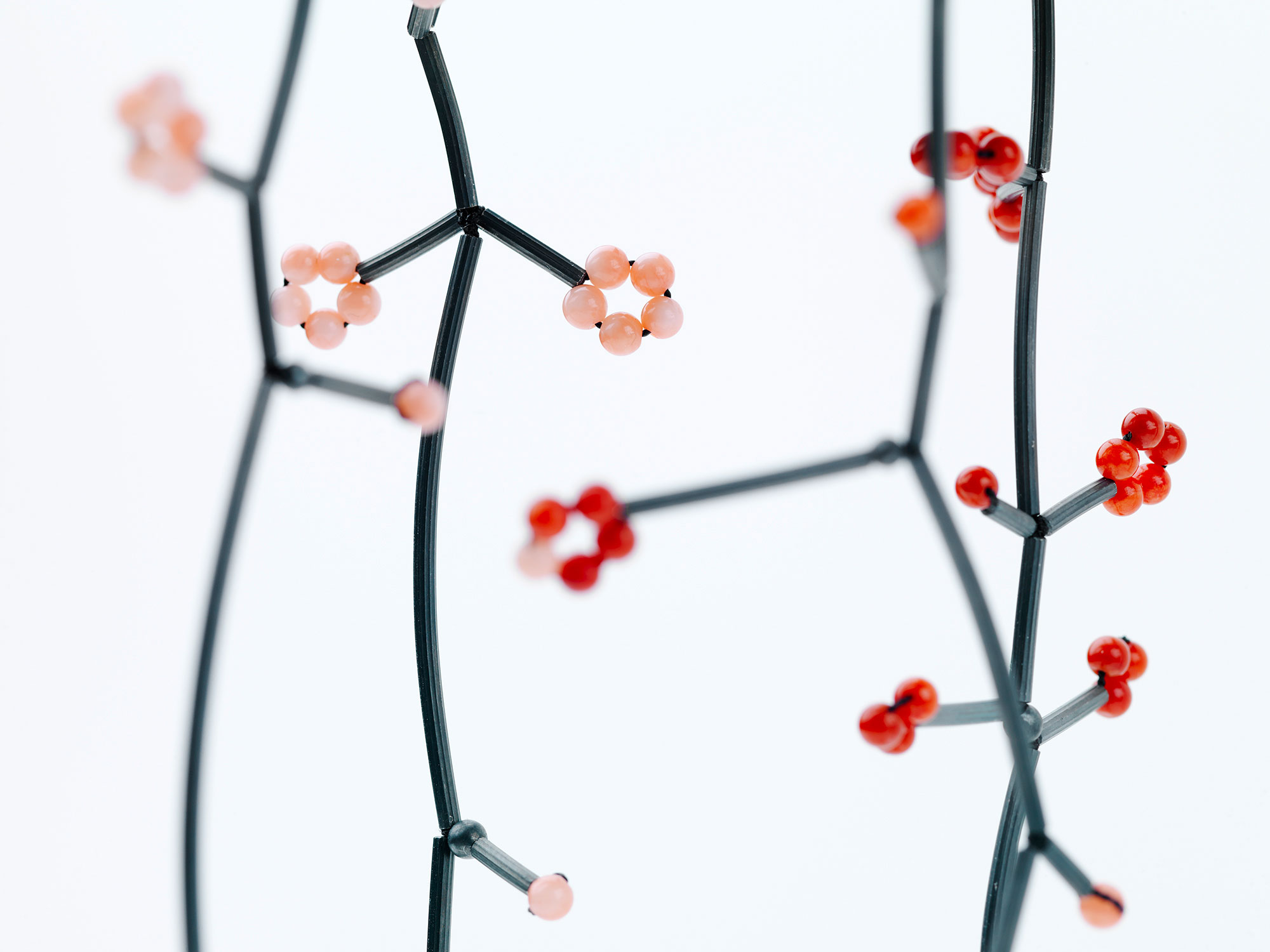 Bloom necklaces I&II 2019 Oxidised silver, faux coral & freshwater pearls 40 cm L # 2010s ← Bloom necklace Bloom necklace series →