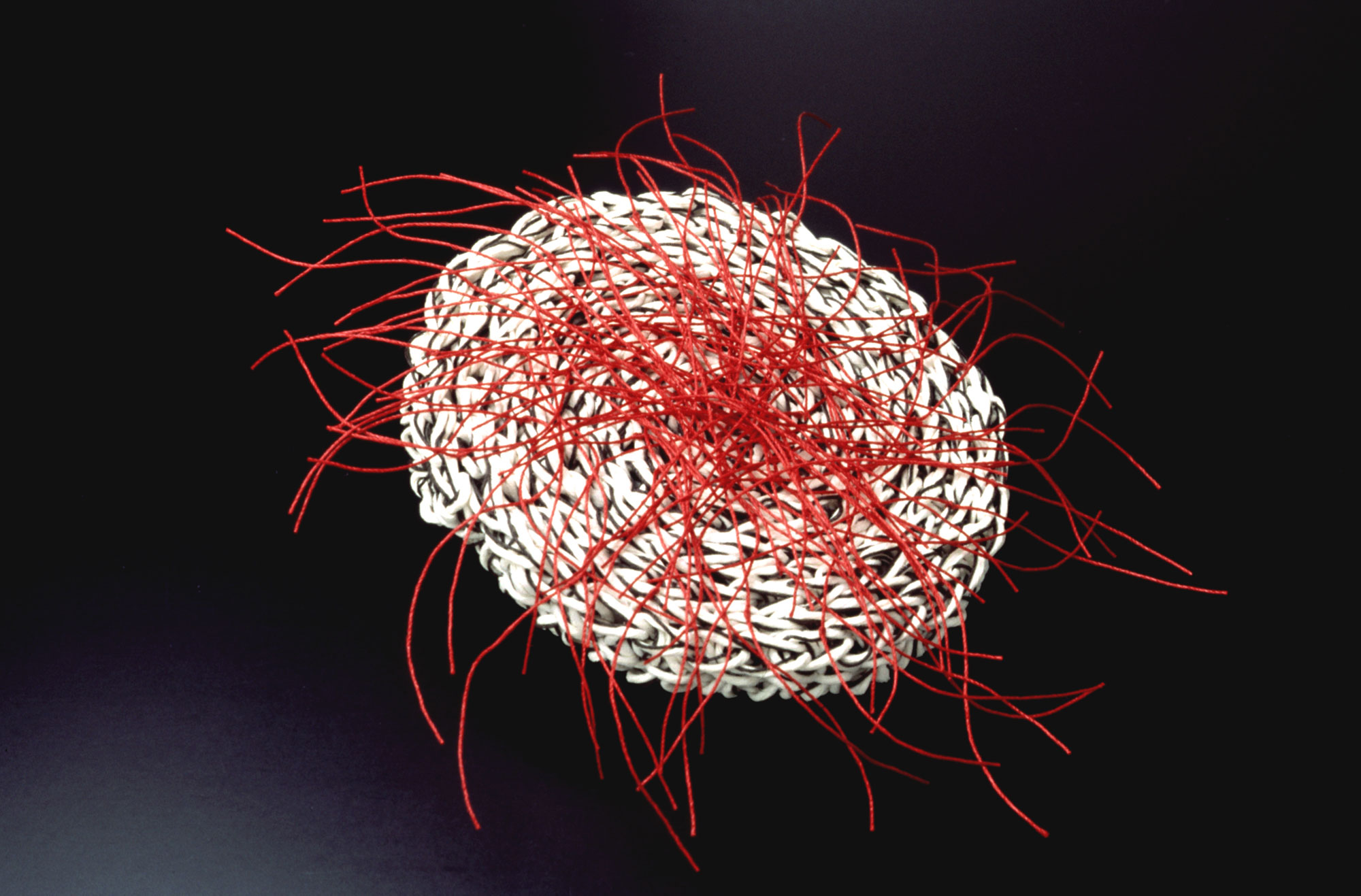 CONCENTRATION 2001 Brooch Spun paper cord, thread 6.5 cm dia. # 2000s ← Moving from the Centre #1 Loop the Loop series, Brooch →