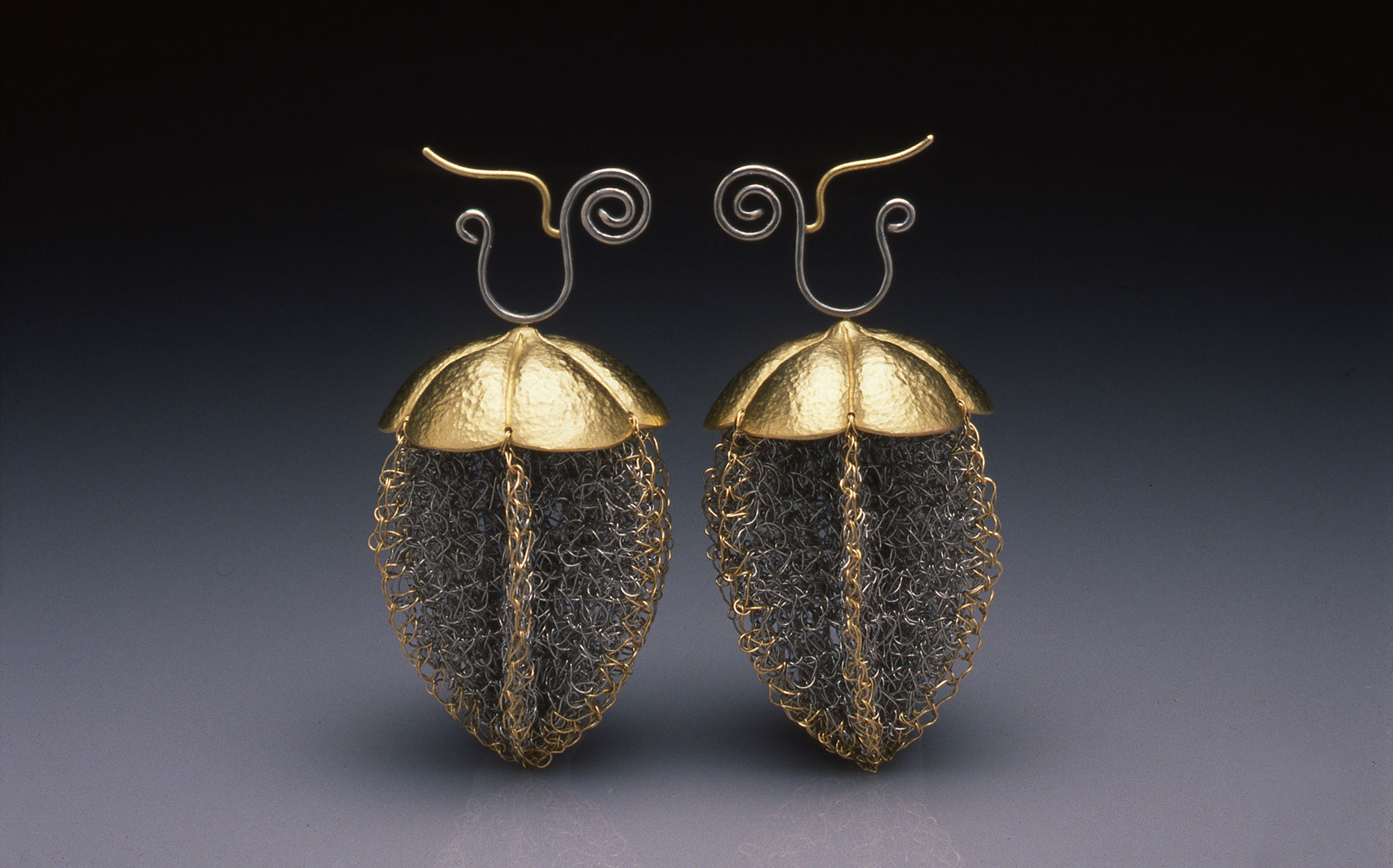 Earrings 1988Platinum, 18ct gold4 cm LPrizewinner Ayrton Metals Platinum Awards 1988Collection: Victoria & Albert Museum, London # 1980s ← Earrings Series of Brooches →