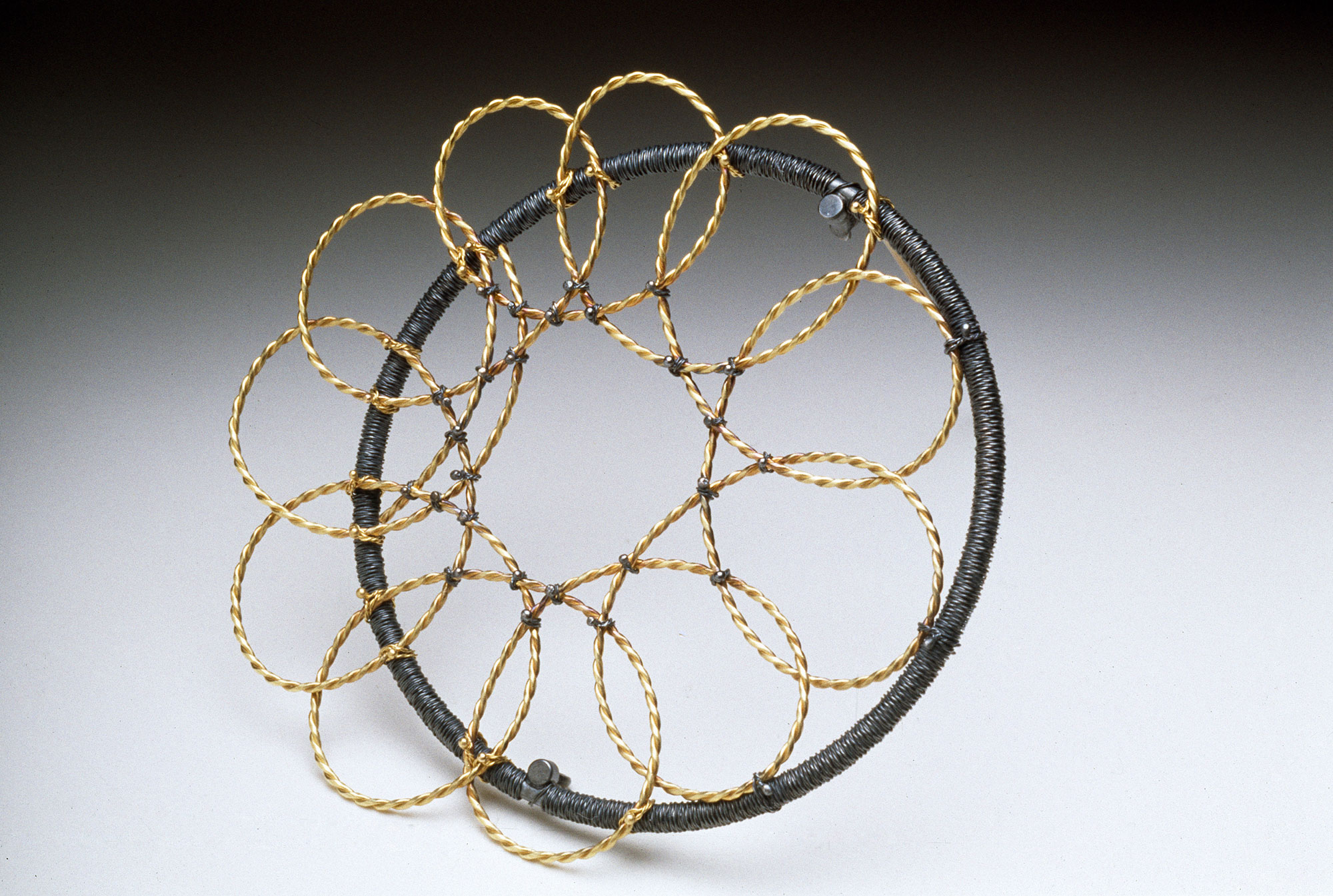 Loop the Loop Series, Brooch 2004 Oxidised silver, 18ct gold 7.5 cm dia. # 2000s ← Loop the Loop Series, Brooch Tangle →