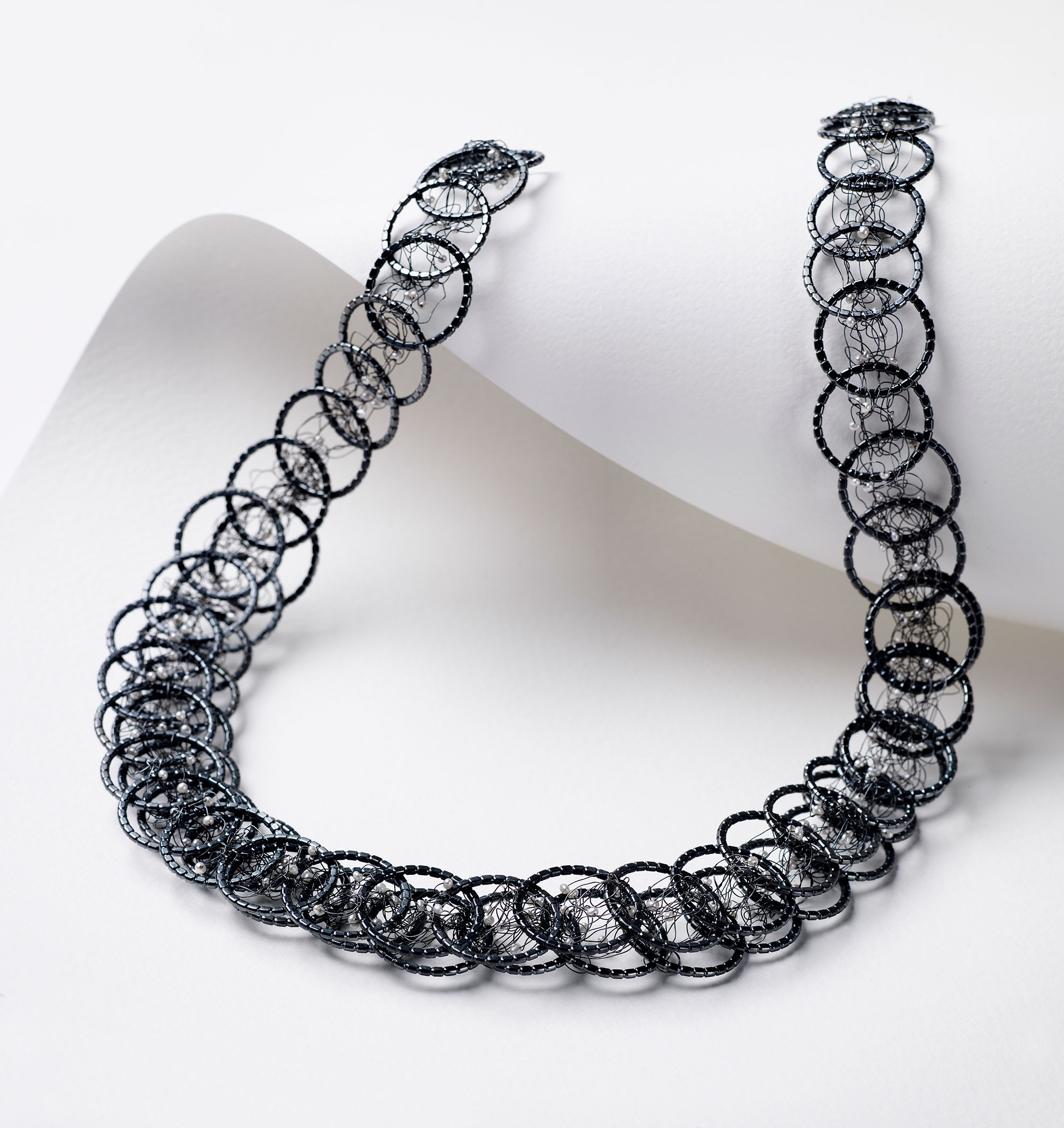 Pearl Dot Necklace 2019 Oxidised silver, freshwater pearls 37 cm L # 2010s ← Bloom necklace series Bloom Earrings →