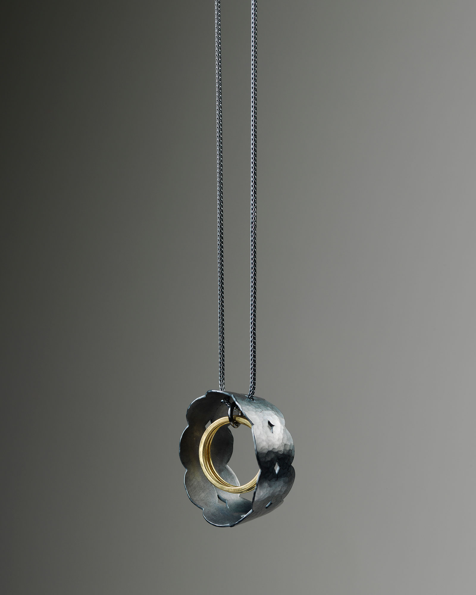 Shima IV, Pendant 2021 Necklace Oxidised siIver, 18ct goId L 49 x 3.4cm dia. # 2020s ← Shima V, Pendant Shima III, Pendant →