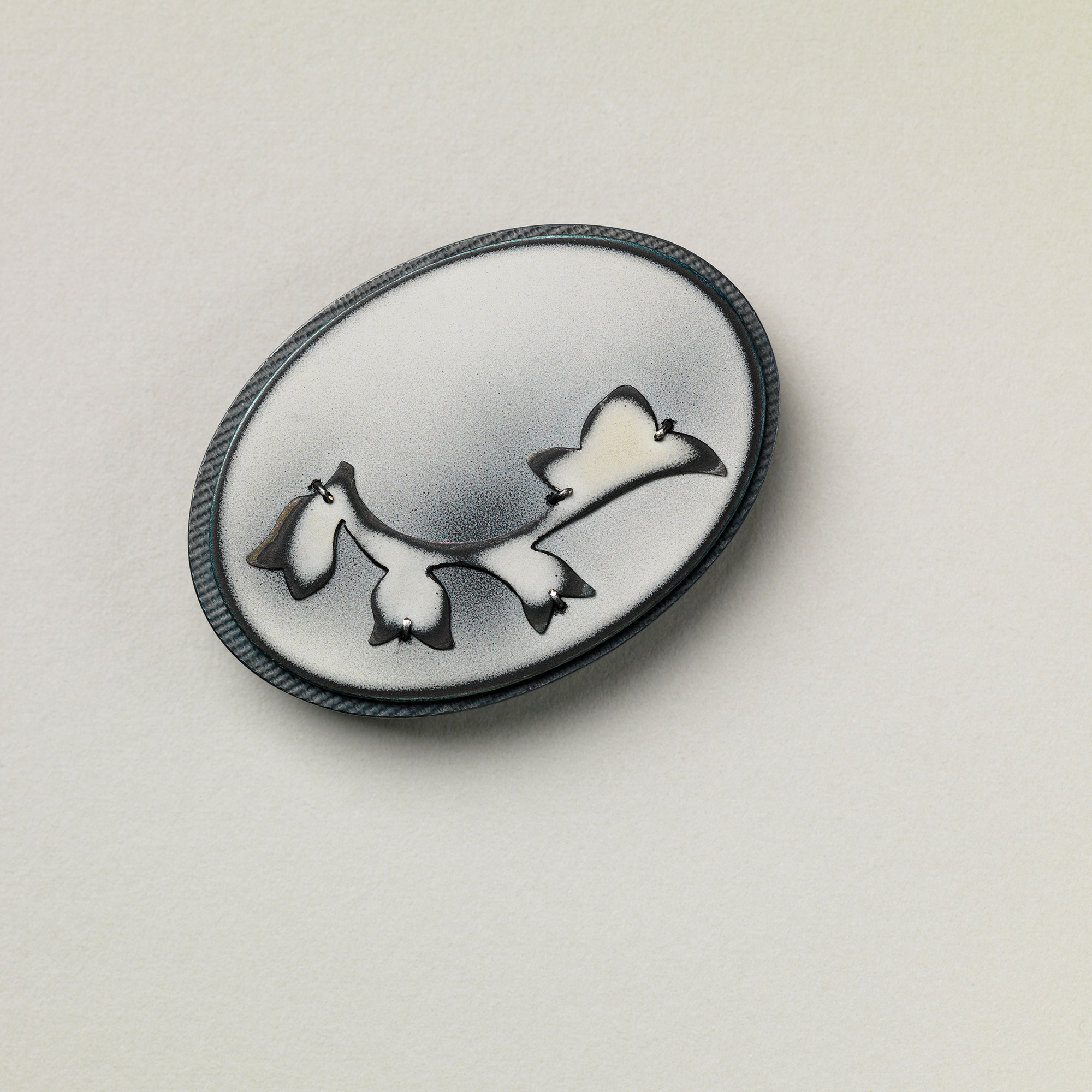 Spring Shadow 2017BroochEnamel, steel, oxidised silver5 x 3.5 cm Catalogue text # 2010s ← Scatter Winter Furrow I & II →