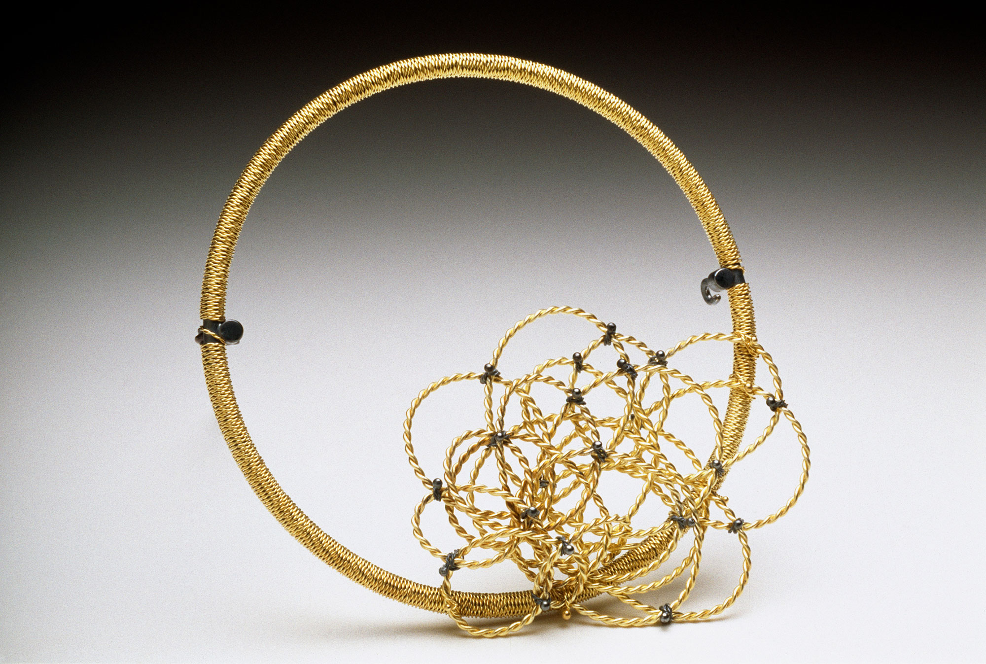 Tangle 2004 18ct gold, oxidised silver 6.5 cm dia. # 2000s ← Loop the Loop Series, Brooch Loop the Loop series, Brooches →